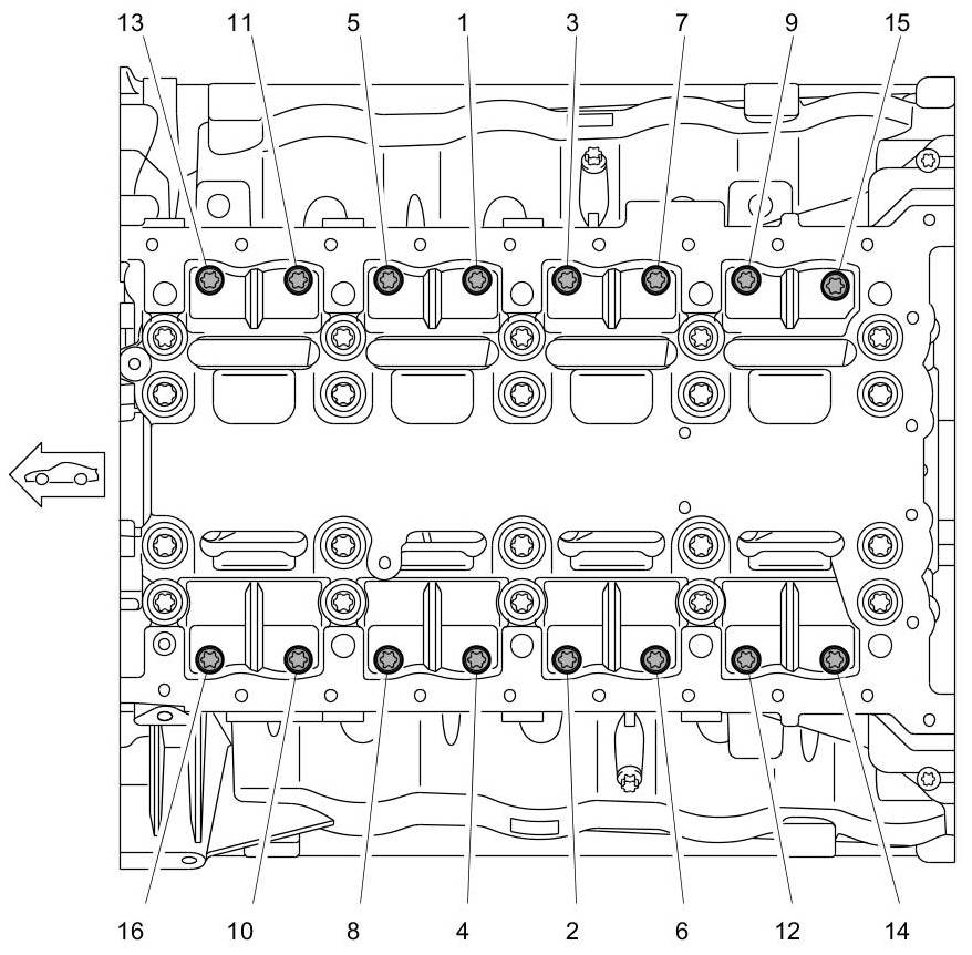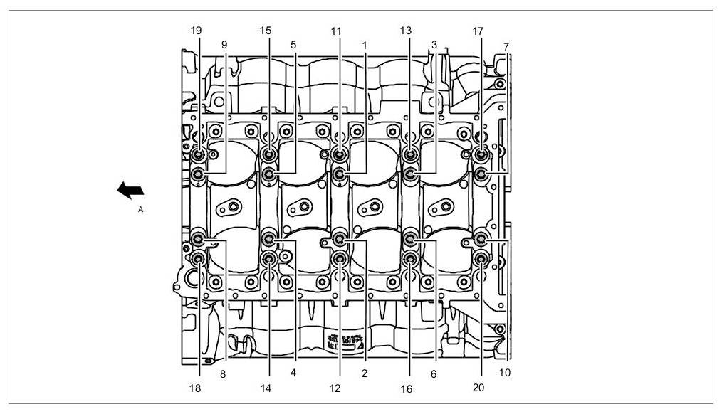 Tightening sequence for securing lower part of crankcase to upper part of crankcase (cross bolt connection)