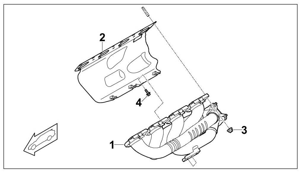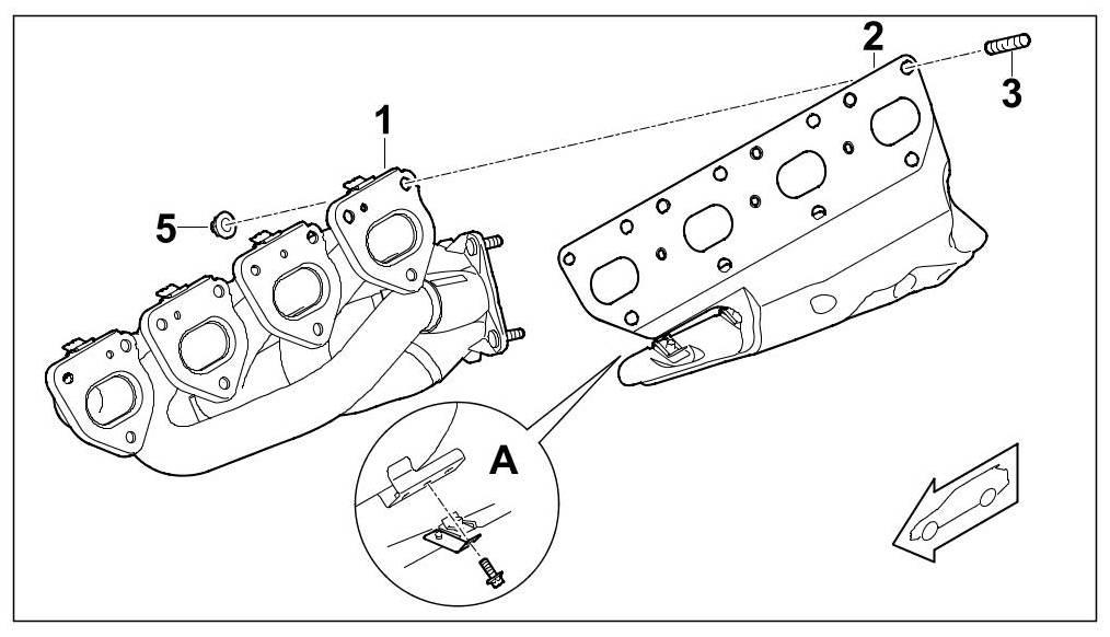 Exhaust manifold seal and mount on naturally aspirated engine, cylinders 1 to 4
