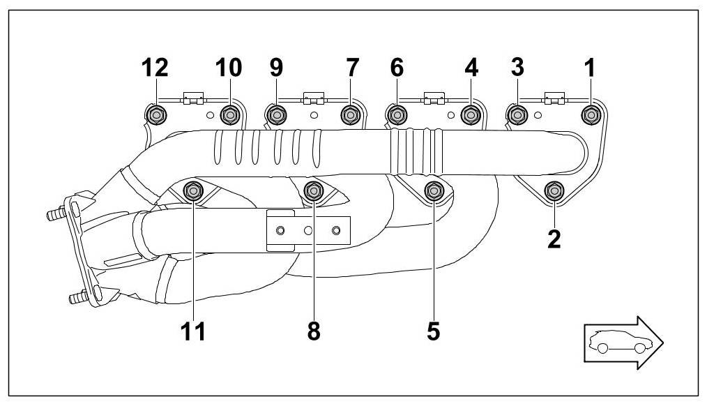 Tightening sequence for exhaust manifold on naturally aspirated engine, cylinders 1 to 4