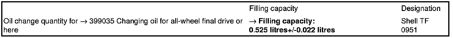 Technical values for rear final drive