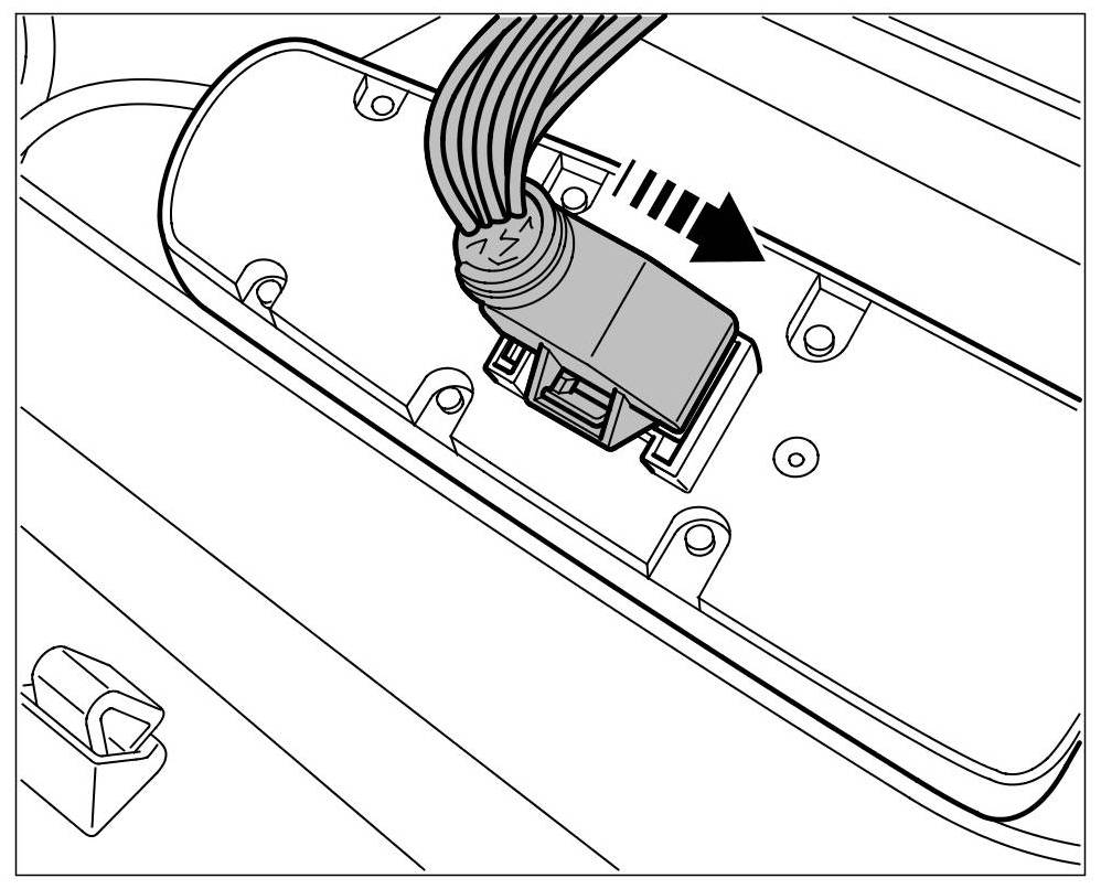 3. Insert electric connector at the switch -arrow- until the connector engages securely.