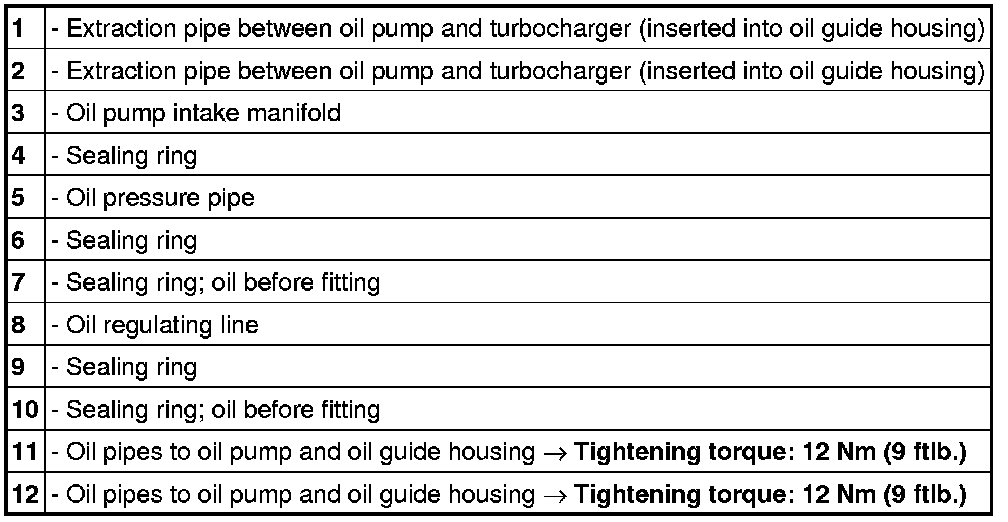 Oil lines, turbo engine, view with oil pan removed
