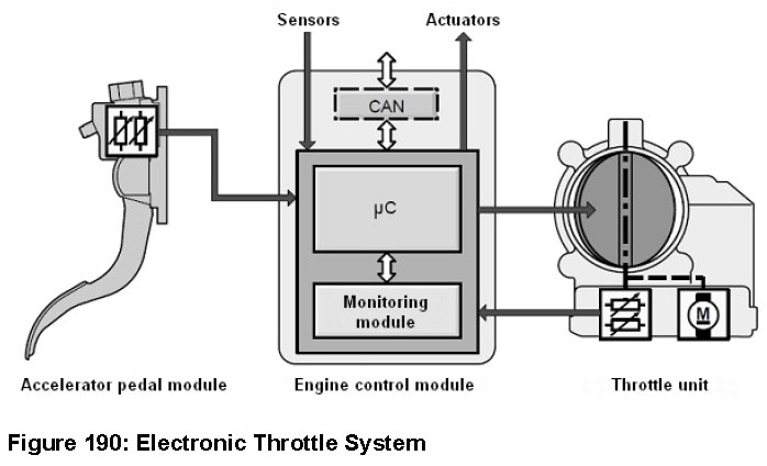 Certain functions of the throttle unit are monitored through self-testing by the throttle unit output stage in the ECM.