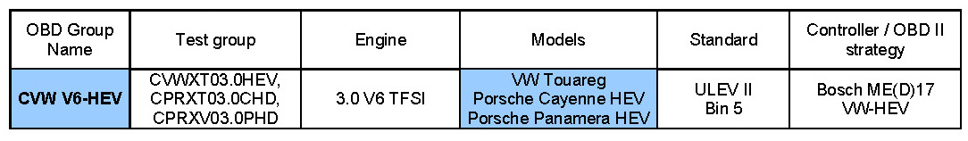 Refer to Input / Output table in applicable OBD Group submission for list of sensors.