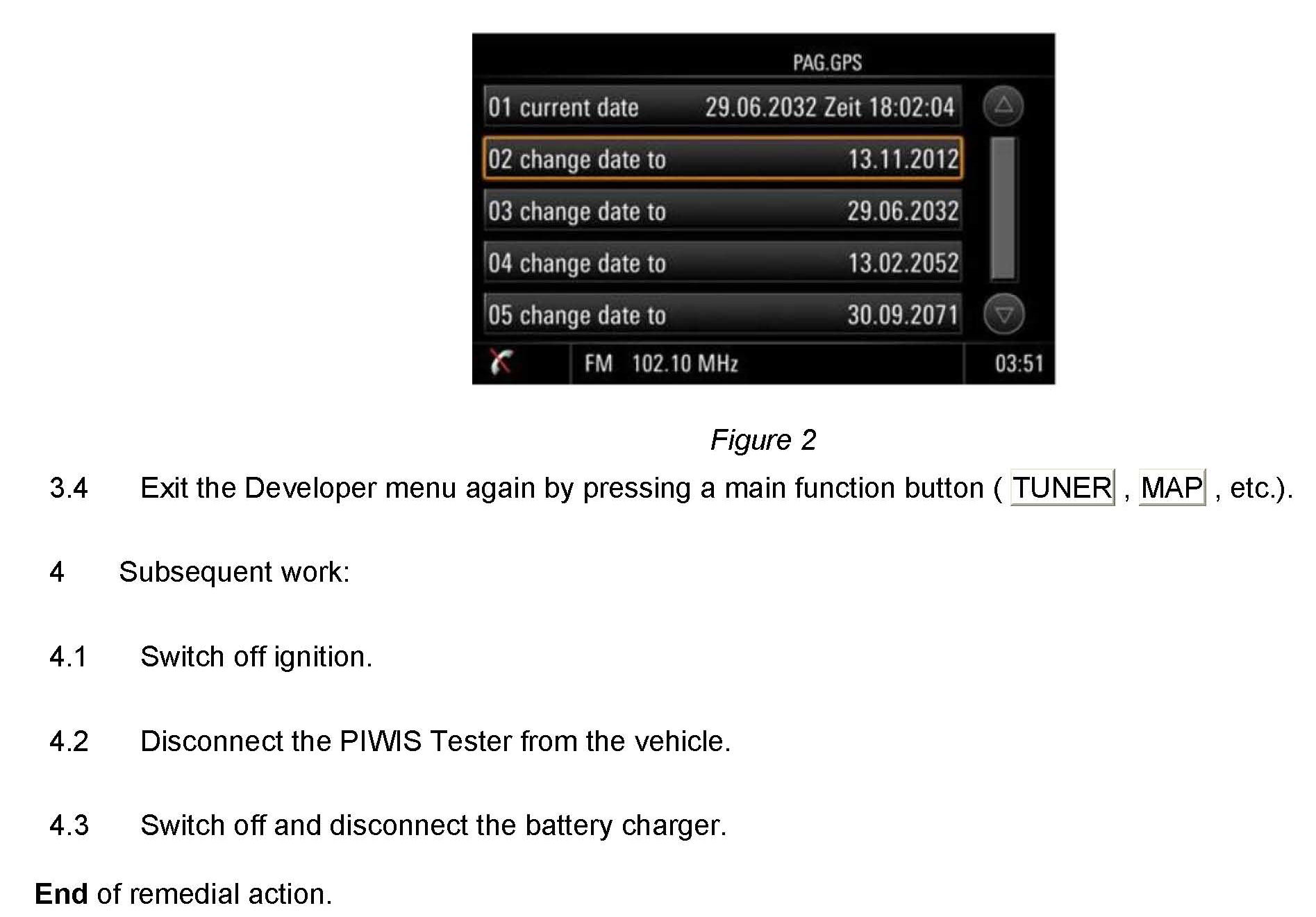Before handing the vehicle over to the customer, the date/time must therefore be checked and the described remedial action must be carried out again if necessary.