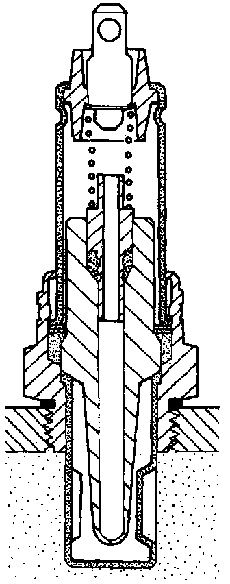 The oxygen sensor, Fig. 14, measures the amount of oxygen present in the exhaust gasses. The sensor reacts to the oxygen and develops a voltage signal which is sent to the electronic control unit. The control unit determines the air/fuel mixture ratio from the signal and controls the fuel regulator accordingly, in order to maintain the correct mixture.