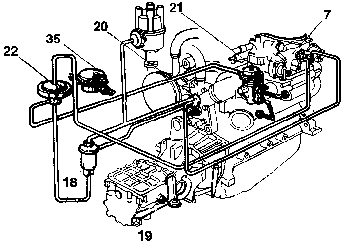 Exhaust gas recirculation is controlled by an EGR control valve. The EGR control valve is installed "in line" in a passage between the exhaust manifold and the intake manifold. Earlier models use external tubes to route exhaust gasses from the exhaust manifold, through the EGR valve, and into the intake manifold, while on later model engines, the gasses are routed through internal passages in the cylinder head. The EGR valve is controlled by a ported vacuum signal, taken from the carburetor. This vacuum signal is modified depending on the vehicle, to control the amount and timing of exhaust gas recirculation.
