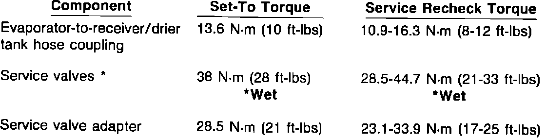 Before connecting original or replacement hoses, fittings, or valves, always apply a few drops of compressor oil to the threads and O-rings of these components. The oil aids assembly and increases the sealing ability of the various fittings. In addition, when loosening/tightening hoses, always use a second wrench to support the fitting or valve to avoid damaging these components.