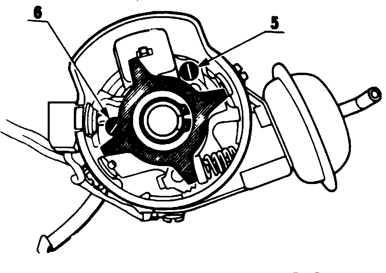 Fig. 5 Rotor cam retaining screws. Solid state electronic ignition distributor: