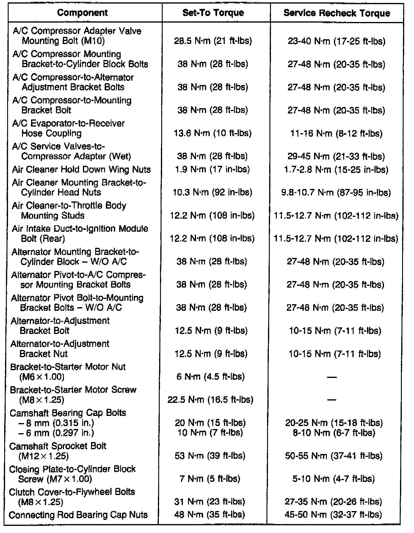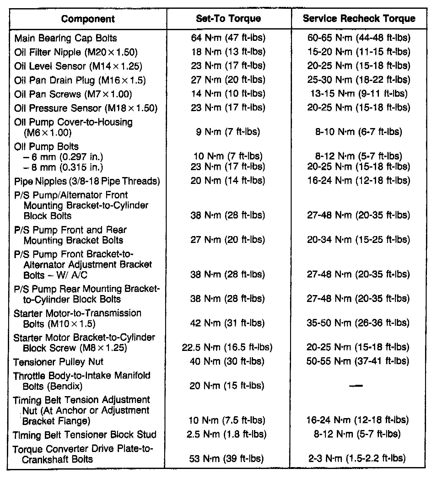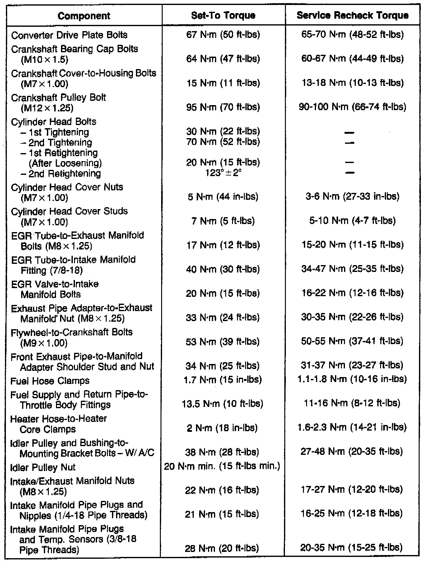 Engine Torque Specifications