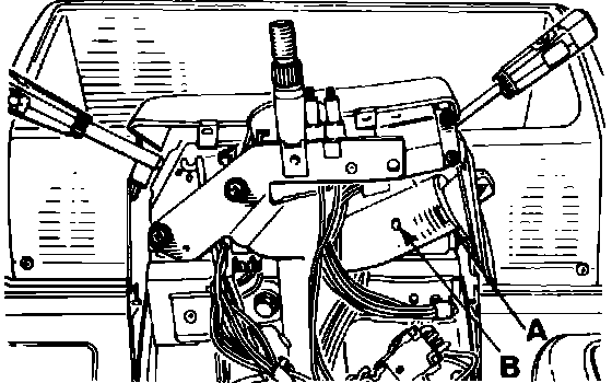 5. Remove attaching screw (A), Fig. 1, then, using suitable tool, push in retaining pin (B) and remove switch by pushing from rear. Retaining pin is located on upper side on 1984-85 models and on lower side on 1986-87 models.