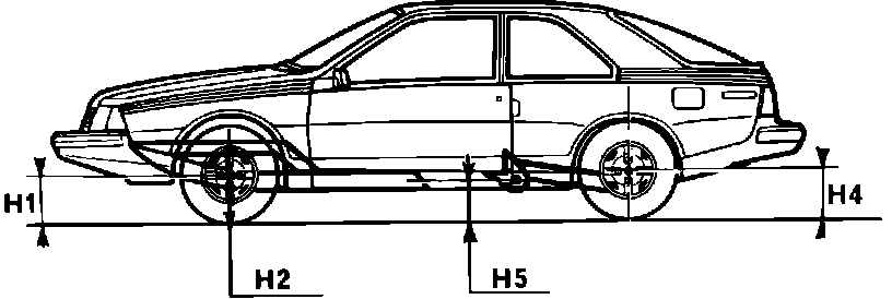 3. Measure and record rear ride height (H5) between side arm bolt and ground, Figs. 2 and 3.