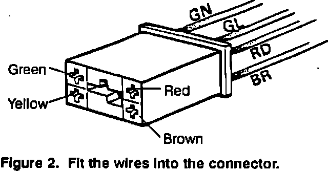 7. Strip the ends of the wires in the harness and fit the four (4) pins. For proper connection, use crimping pliers, P/N 88 18 999. Fit the wires into the 4-pin connector, P/N 91 23 555, as shown in Figure 2.