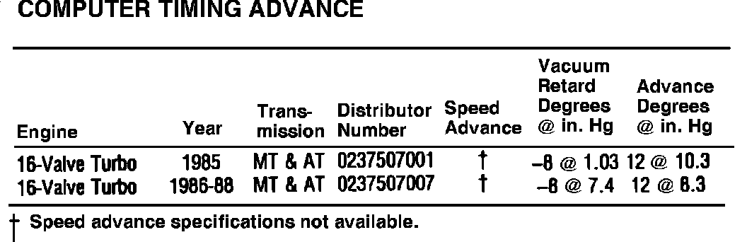 Computer Timing Advance Specifications: