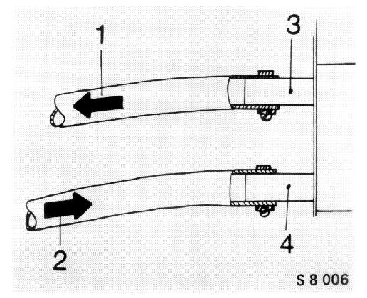 2 From coolant distribution pipe, connected to the engine block.