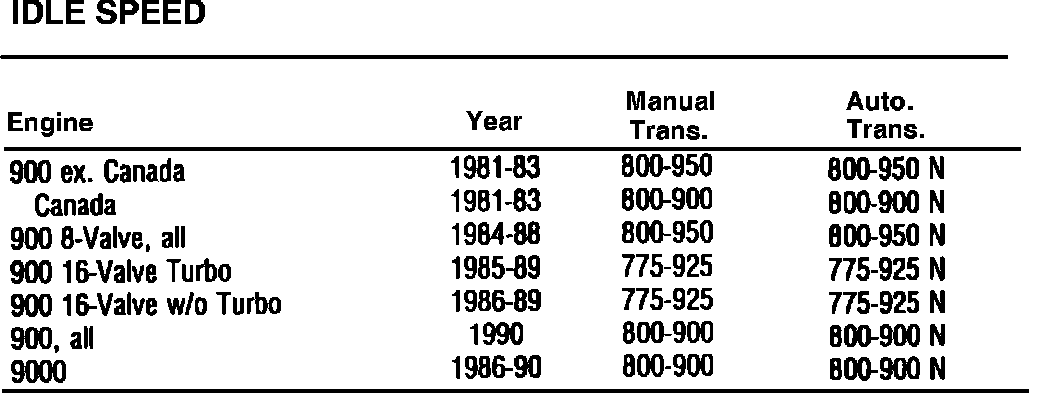Idle Speed Specifications: