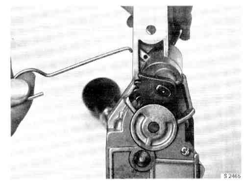 3. When the key is in this position, the lock barrel pin can be pressed in with a suitable rod inserted through a hole under the gear lever housing.