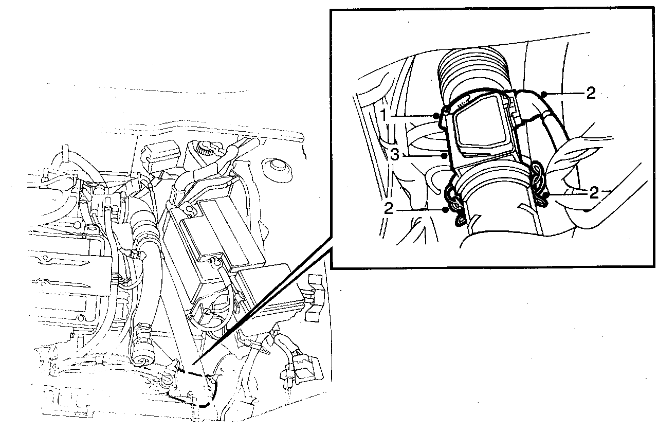3 Withdraw the mass air flow sensor from the cover and rubber gaiter.