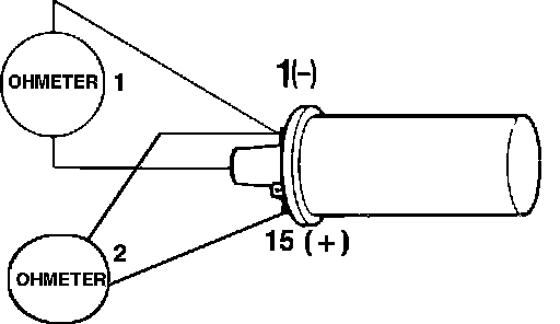 2. Measure the resistance between terminals 1 and 15, 2 Fig. 86. The reading should be approximately 1/2 to 3/4 Ohm.