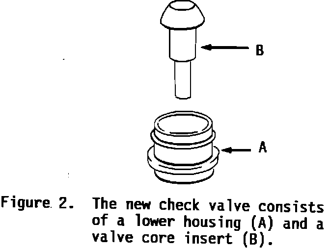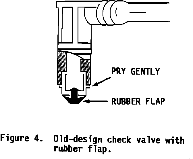 3. If the rubber flap is missing from the old-design check valve (Figure 4), it will be necessary to follow one of the steps (4A or 4B) listed below to remove any remnants of the flap.