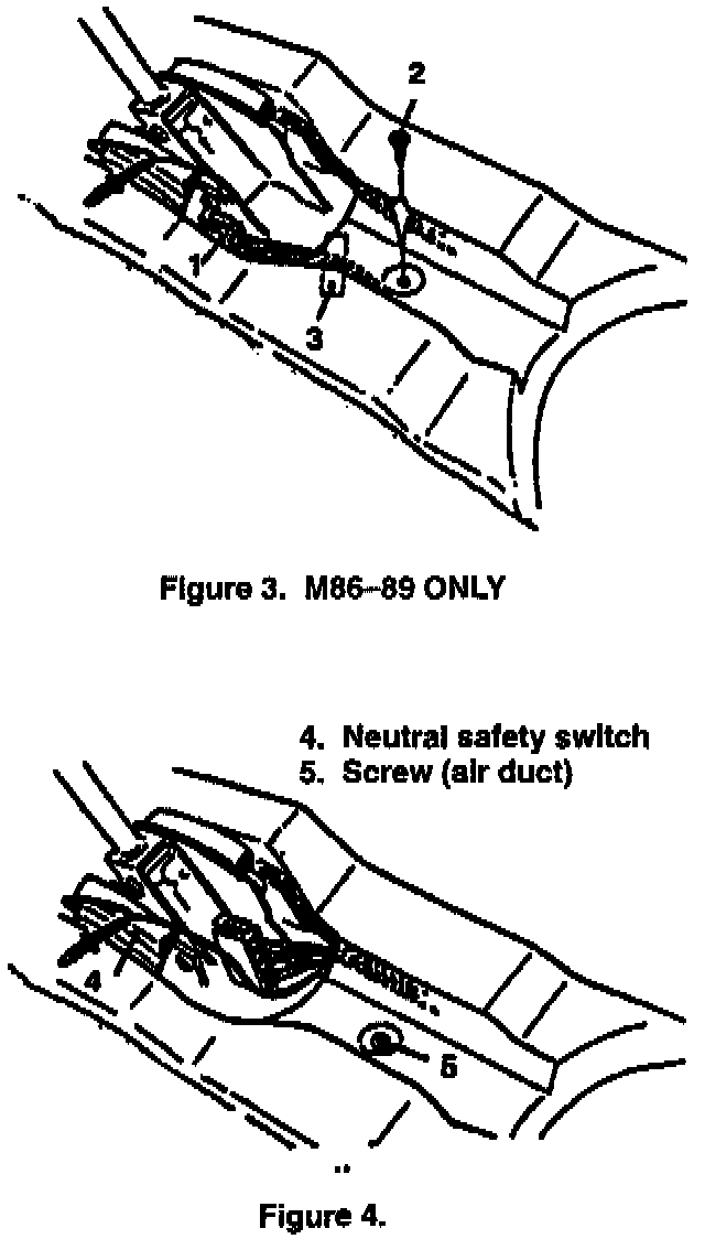 7. Remove the neutral safety switch (see Figure 4) and replace it with a new one, P/N 4062980. Reinstall the screw that holds the air duct.