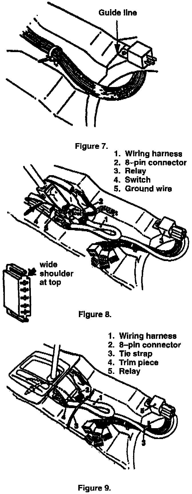 a. On 1986-89 models, use the small tie strap to fasten the relay harness to the existing harness (Figure 9).