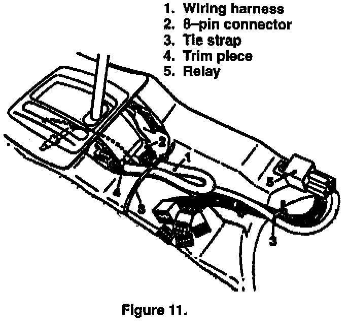 5. After being fastened, the eight-pin connector should not interfere with the sliding cover piece on the selector trim panel. This can be checked by sliding the cover over the selector level and locating the front edge against the center console (Figure 11) Move the lever back to the "D1" position and check for clearance. If necessary, the sliding trim piece can be trimmed a maximum of 8 mm.