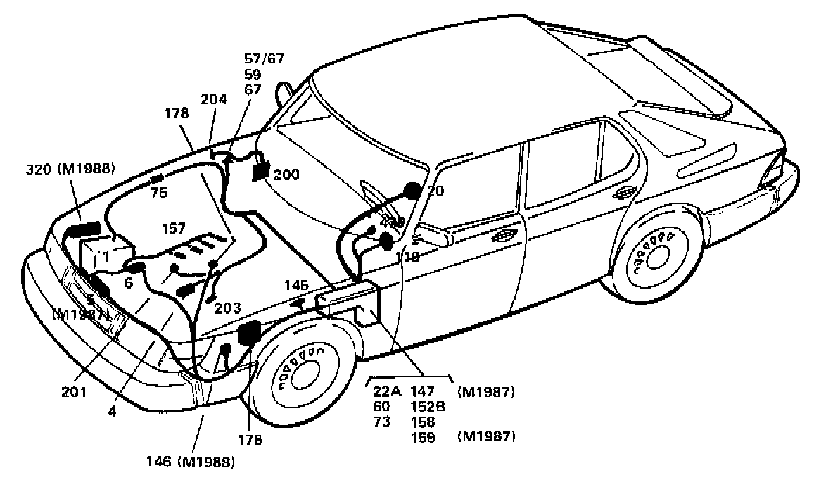 67 6-pole connector one in the engine compartment, on the right-hand side, at the air intake (two on the 1988 116 Lambda)