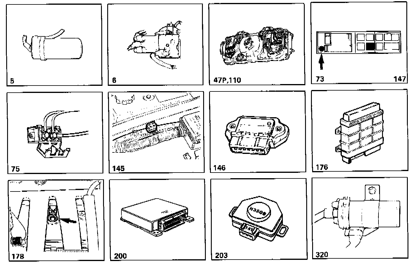 146 Amplifier for the electronic ignition system in the engine compartment, on the left-hand wheel housing