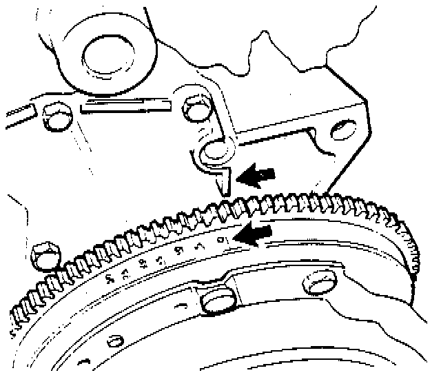 1. Turn the crankshaft to bring the 0° mark in line with the timing mark (top dead center for No. 1 and No. 4 cylinders) and remove the camshafts (all valves are closed in this position). Place a cover over the timing-cover aperture to prevent collets or seals falling inside.