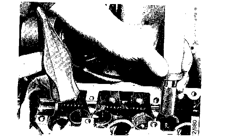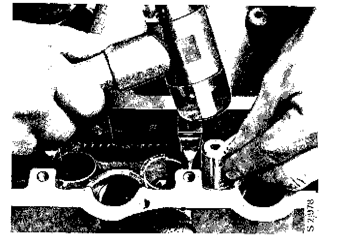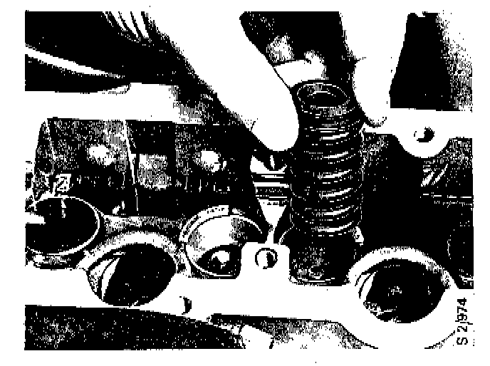 3. Fit protective sleeves 8393746 over the valve springs to prevent the tappet guides from being scored. Note how the sleeves are fitted.
