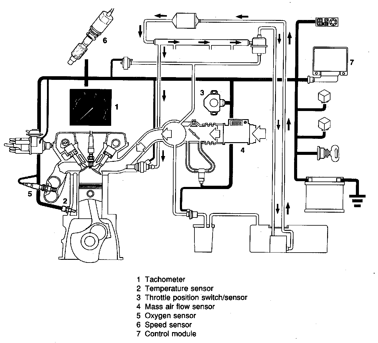 - The mass air flow sensor (4) provides information on the air mass supplied to the engine.