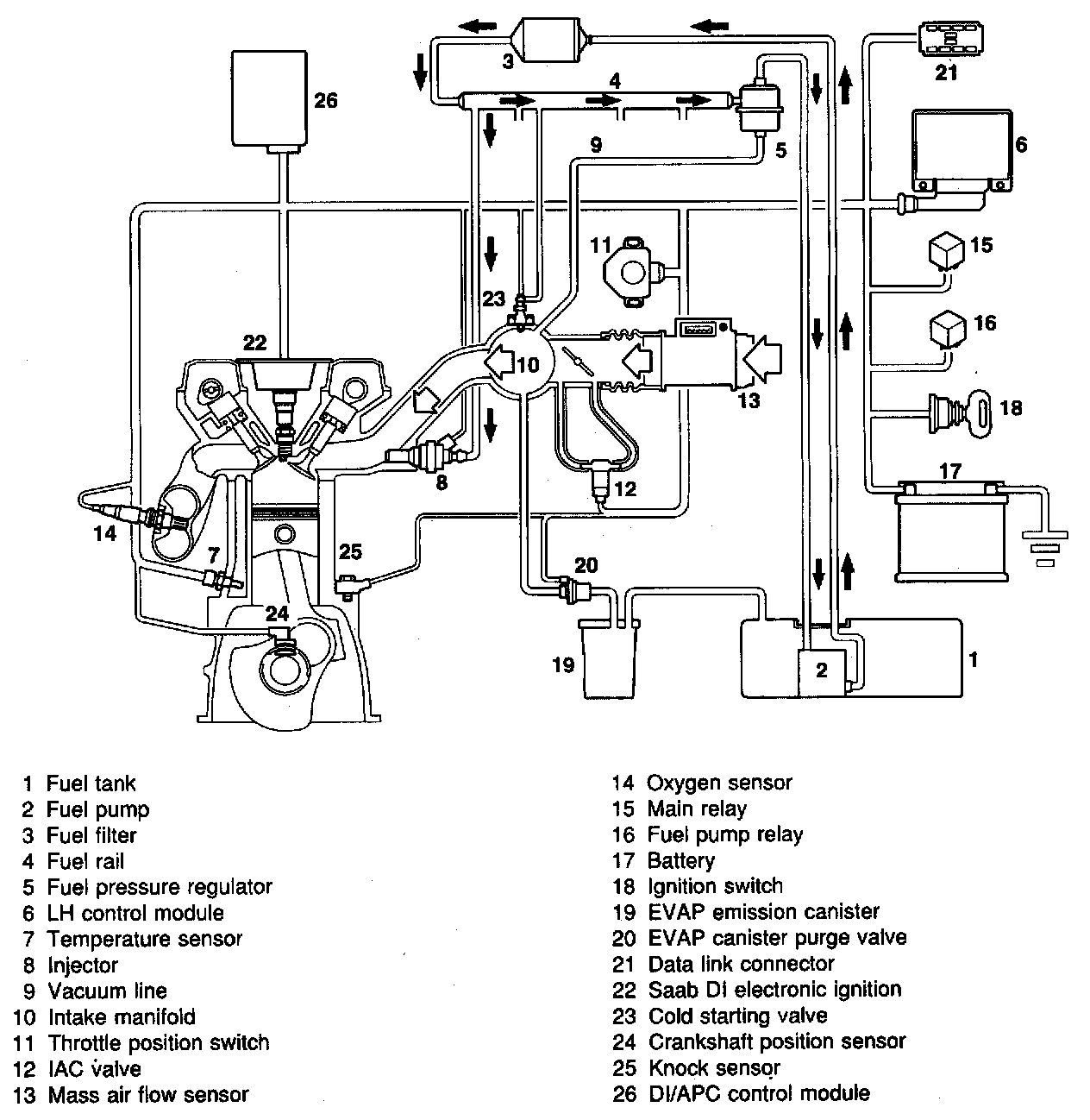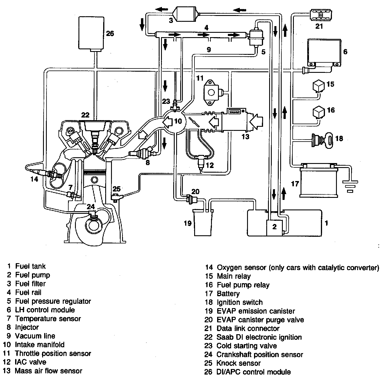 The system works as follows: An electric fuel pump sucks fuel from the fuel tank and builds up pressure in the system. The pressure is determined by a fuel