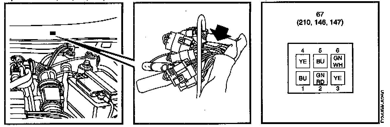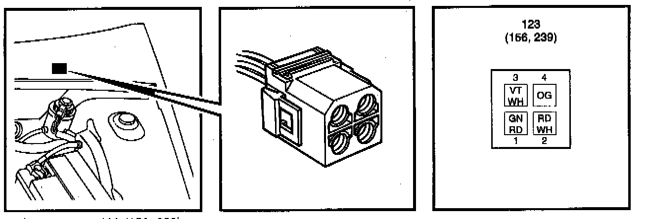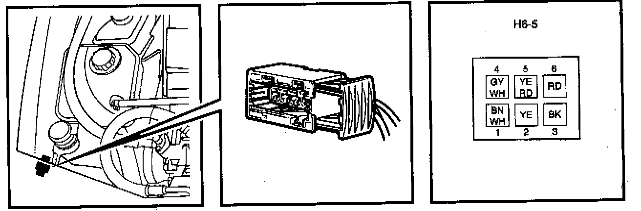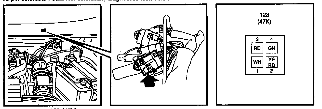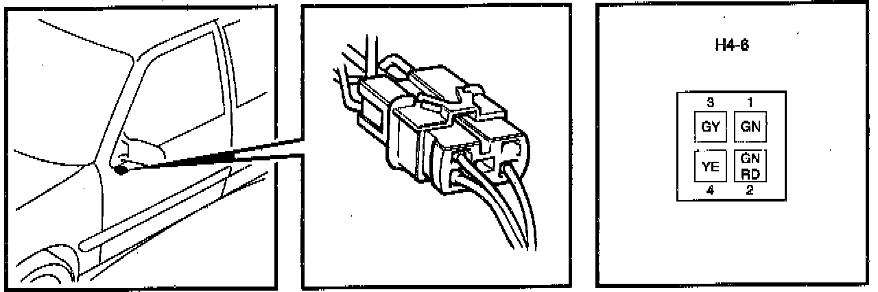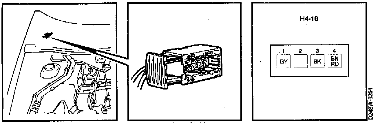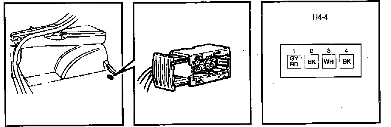 4-pin connector in engine bay behind bulkhead partition, H4-16: