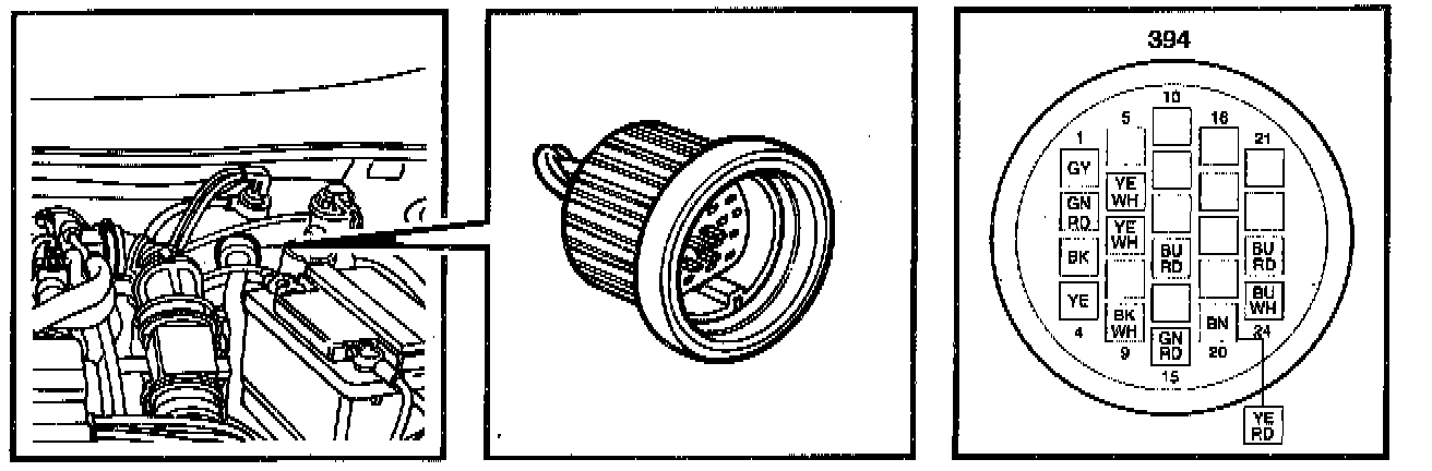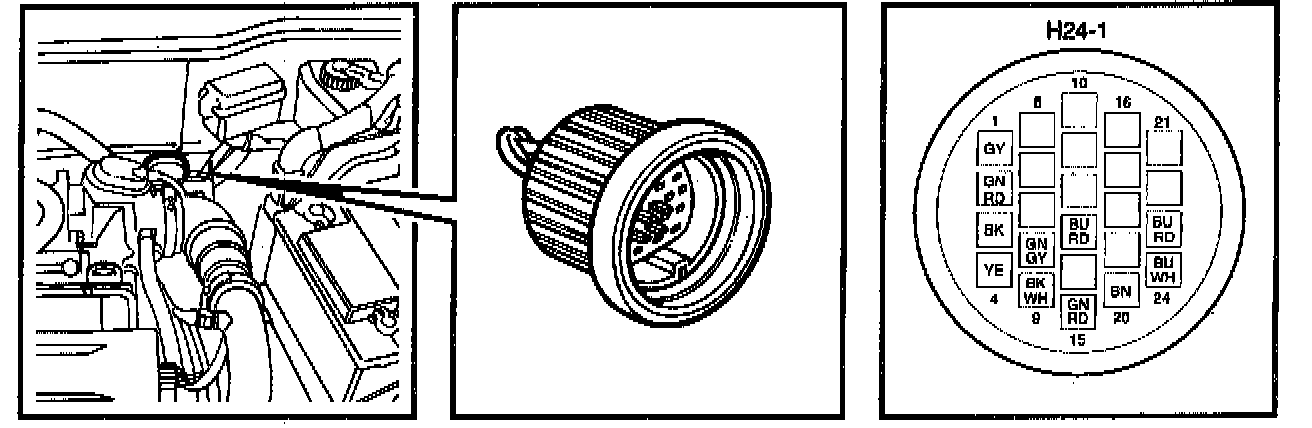 24-pin connector in engine bay on bulkhead partition, H24-1:
