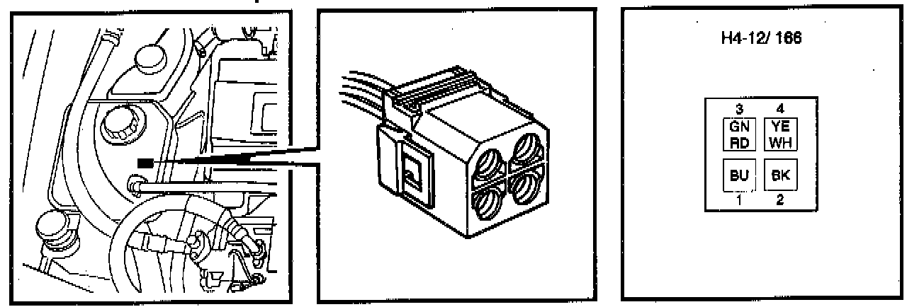 4-pin connector adjacent to right-hand wheel housing, H4-12/166: