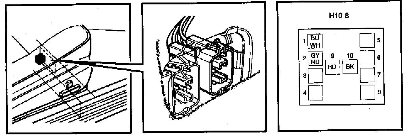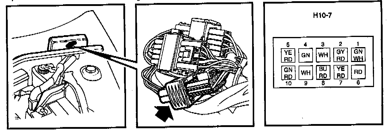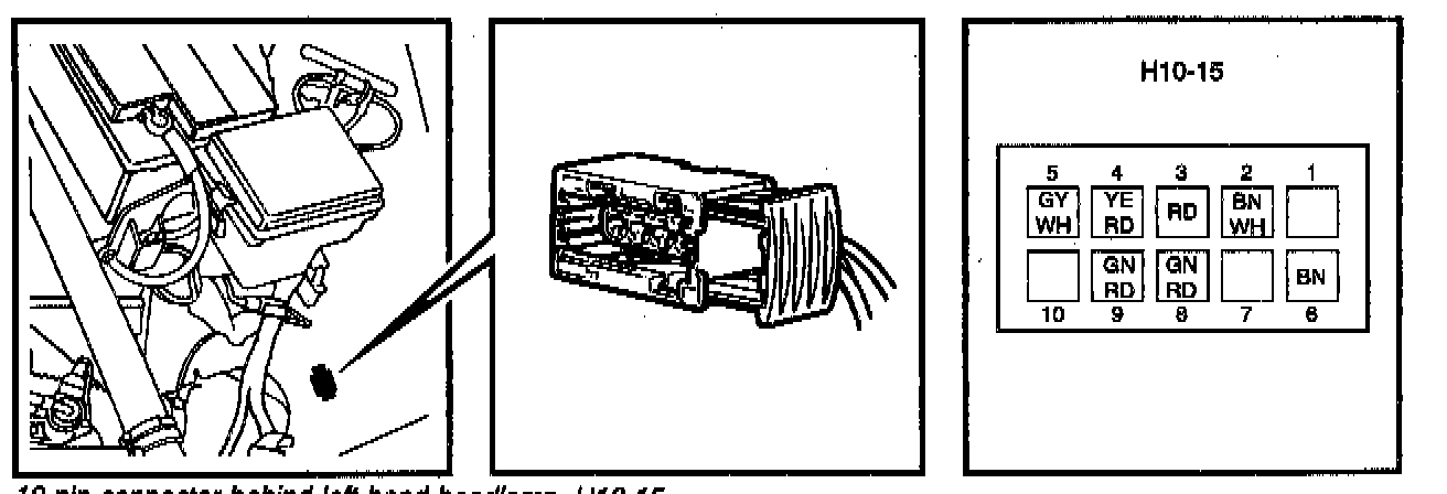 10-pin connector in engine bay on left adjacent to windscreen wiper motor, H10-7:
