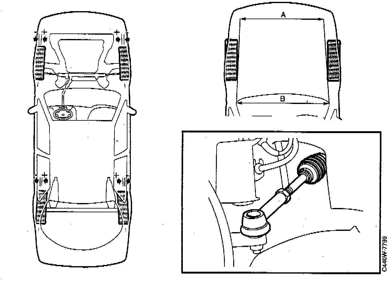 2. Using the tracking gauge measure dimension A between the wheel rims at axle height.