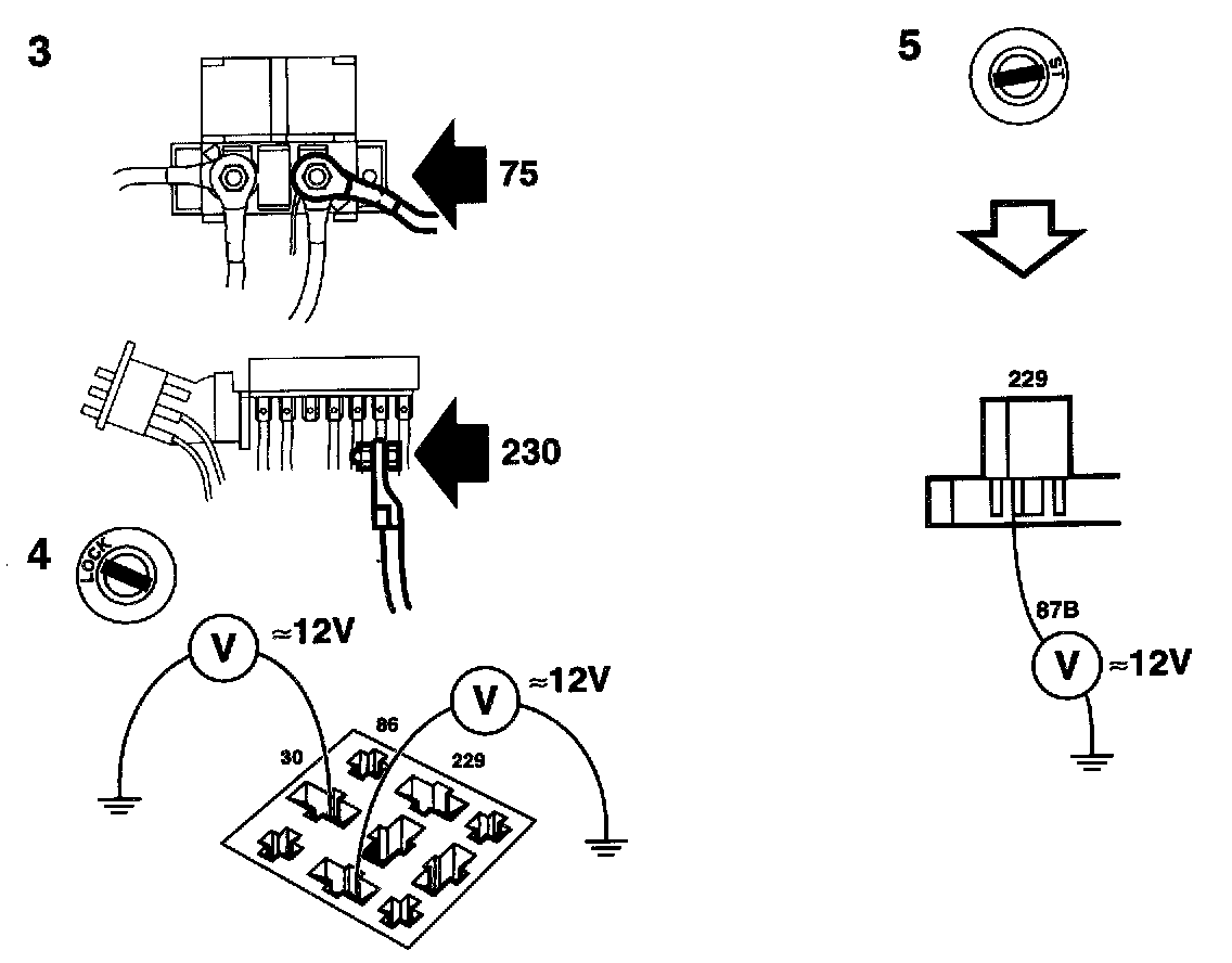 - Check the power supplied to pin 87b.
