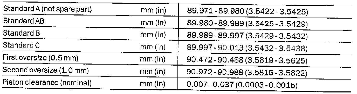 The piston classification code is stamped on the piston crown. The codes for servicing are: