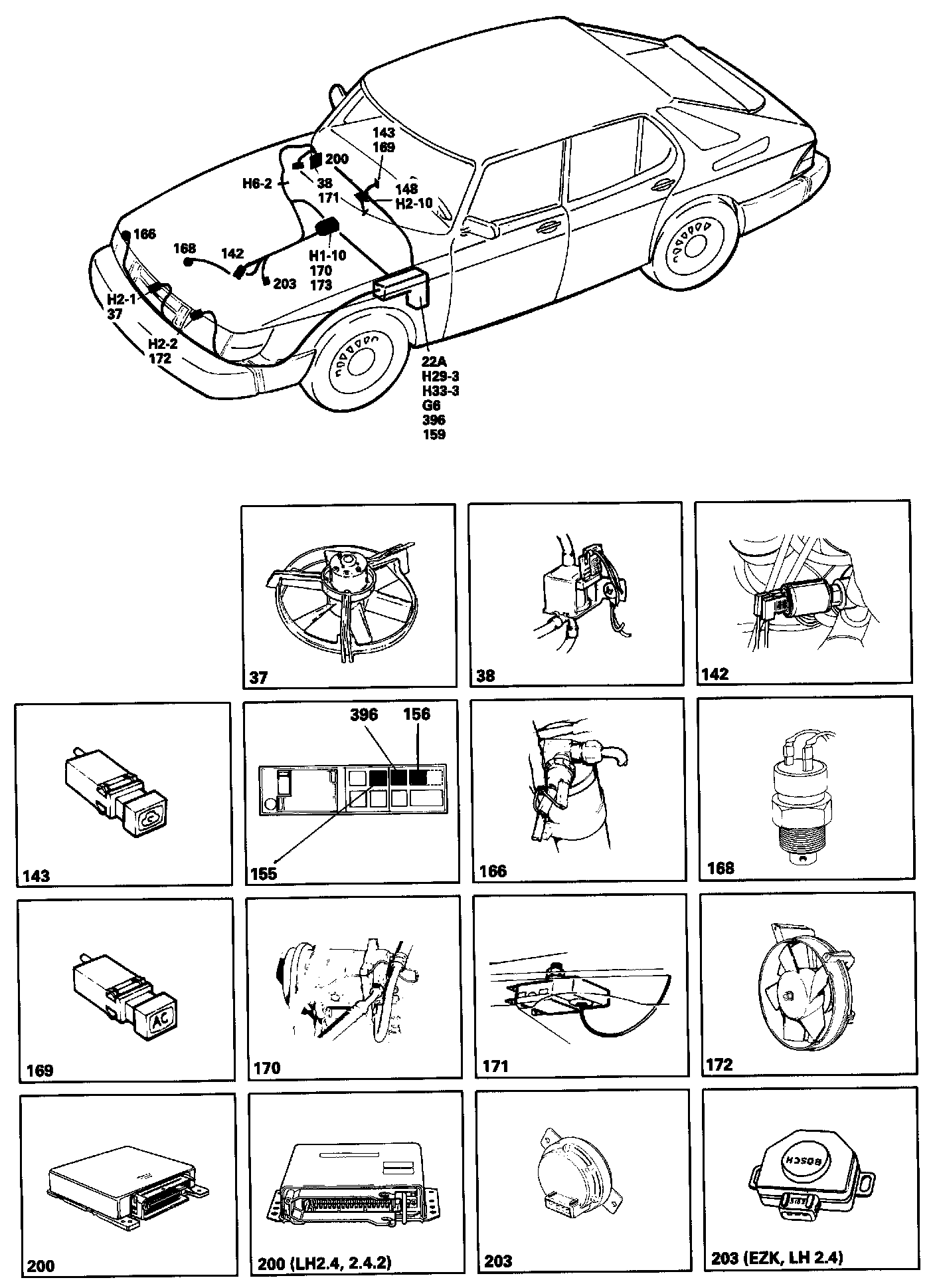 166 Pressure switch for the AC radiator fan in the engine compartment, on the drying agent container.