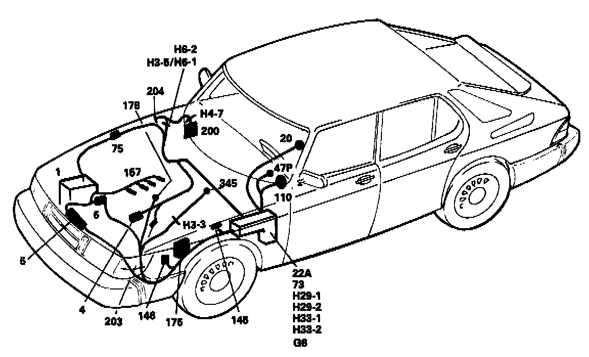 (H3-6) in the engine compartment, behind the right-hand wheel housing