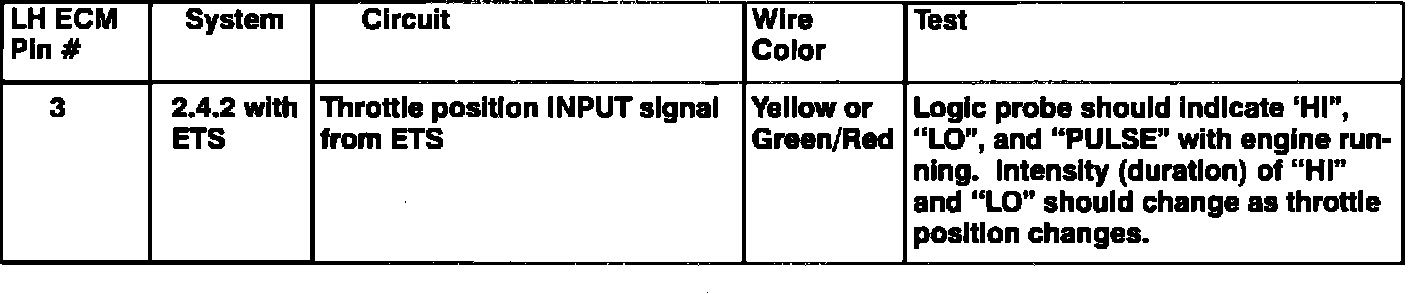 1. Check that there are no fault codes stored in the ETS system. Many ETS faults could cause an incorrect throttle position digital signal to be received at LH ECM pin # 3.