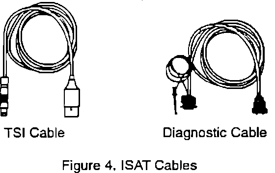 With EPROM version 3.12, ISAT receives its power supply from the diagnostic or TSI cable, Figure 4. If one of these cables is not connected, the display will go out on activation of "MEASURE" and the function will not be performed.