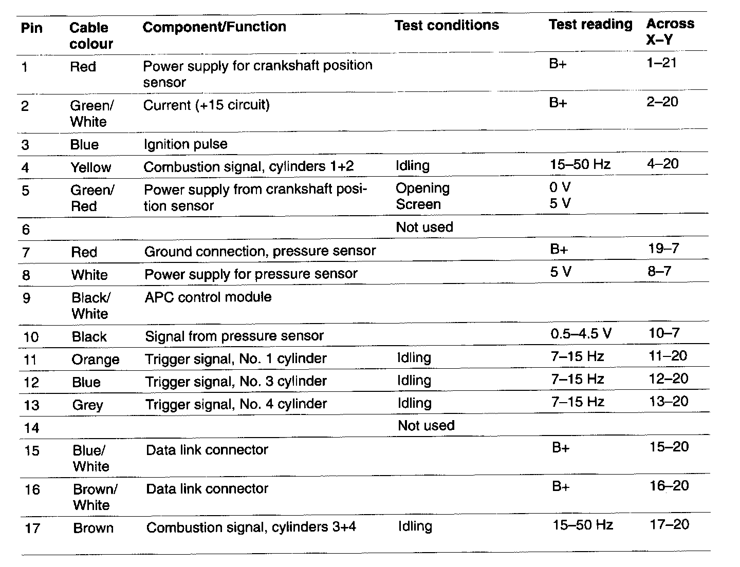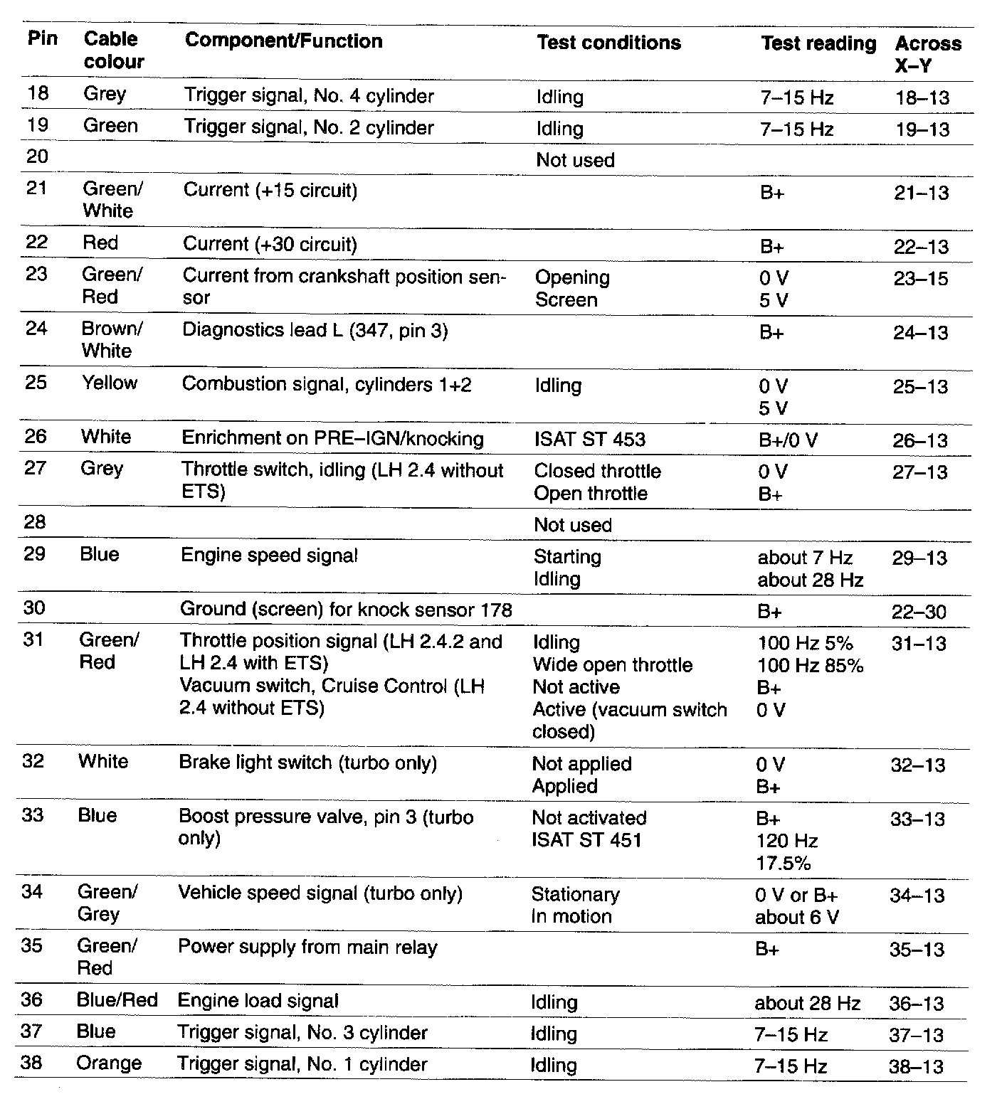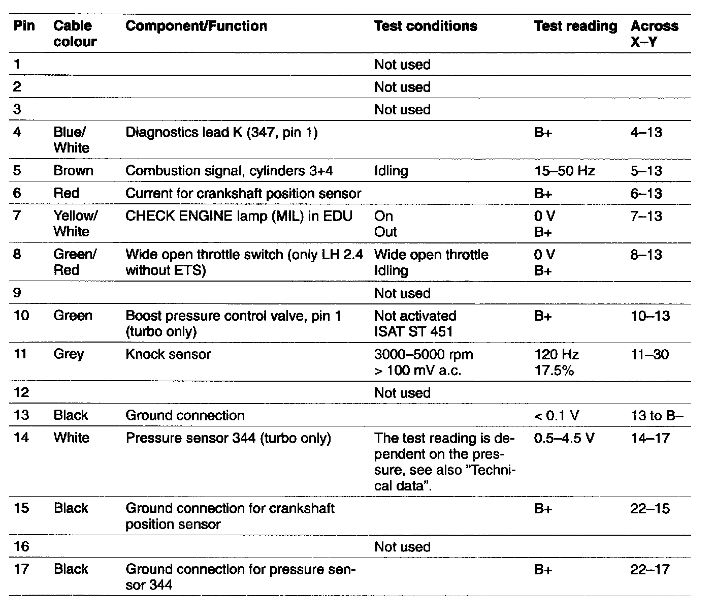- All test readings are for an engine at normal operating temperature.