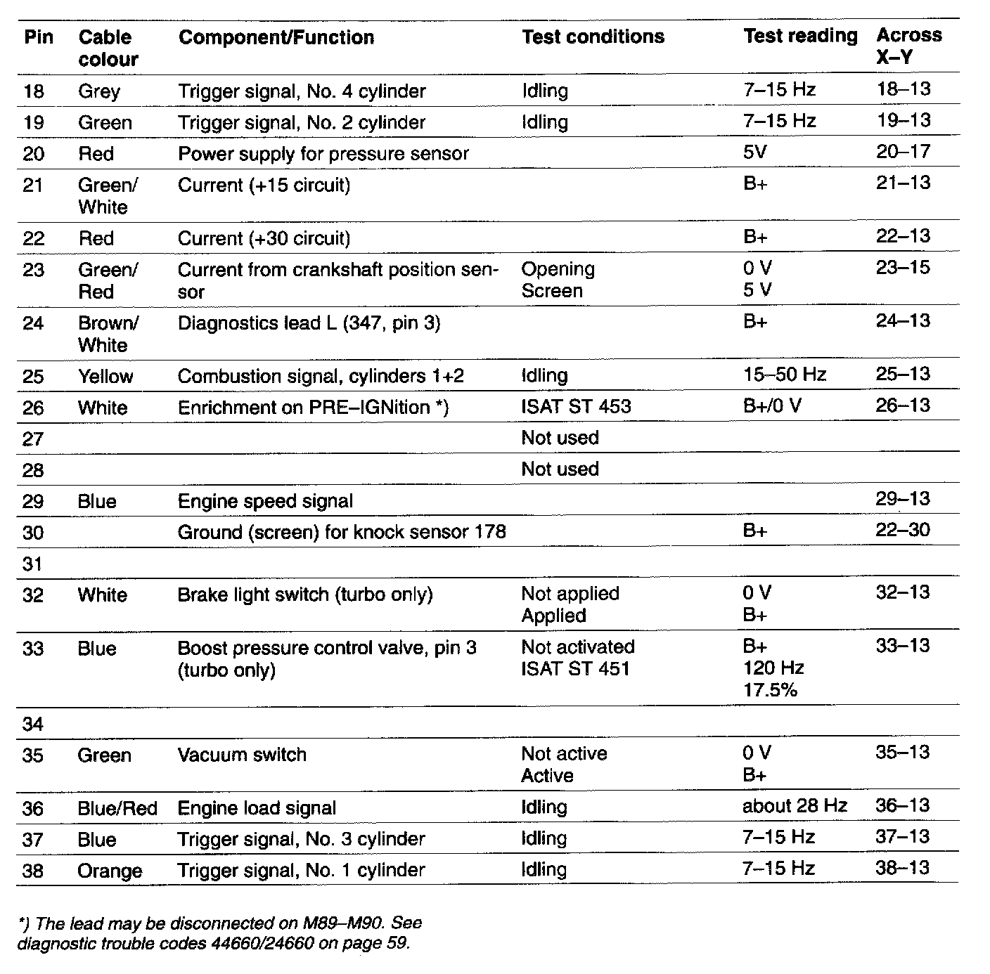 Test readings, control module connections M89-M90