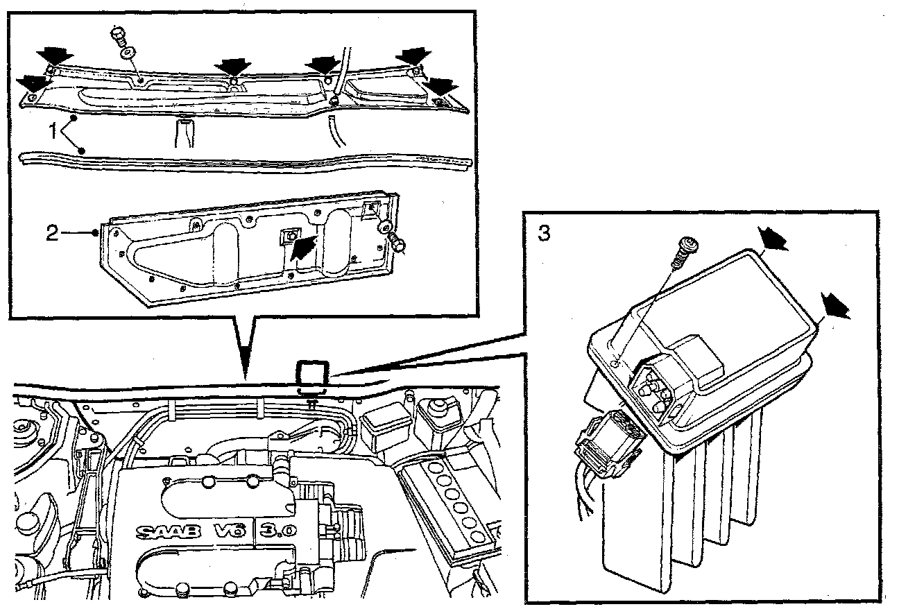 3. Unplug the connector and undo the three securing screws. Lift away the fan control module.