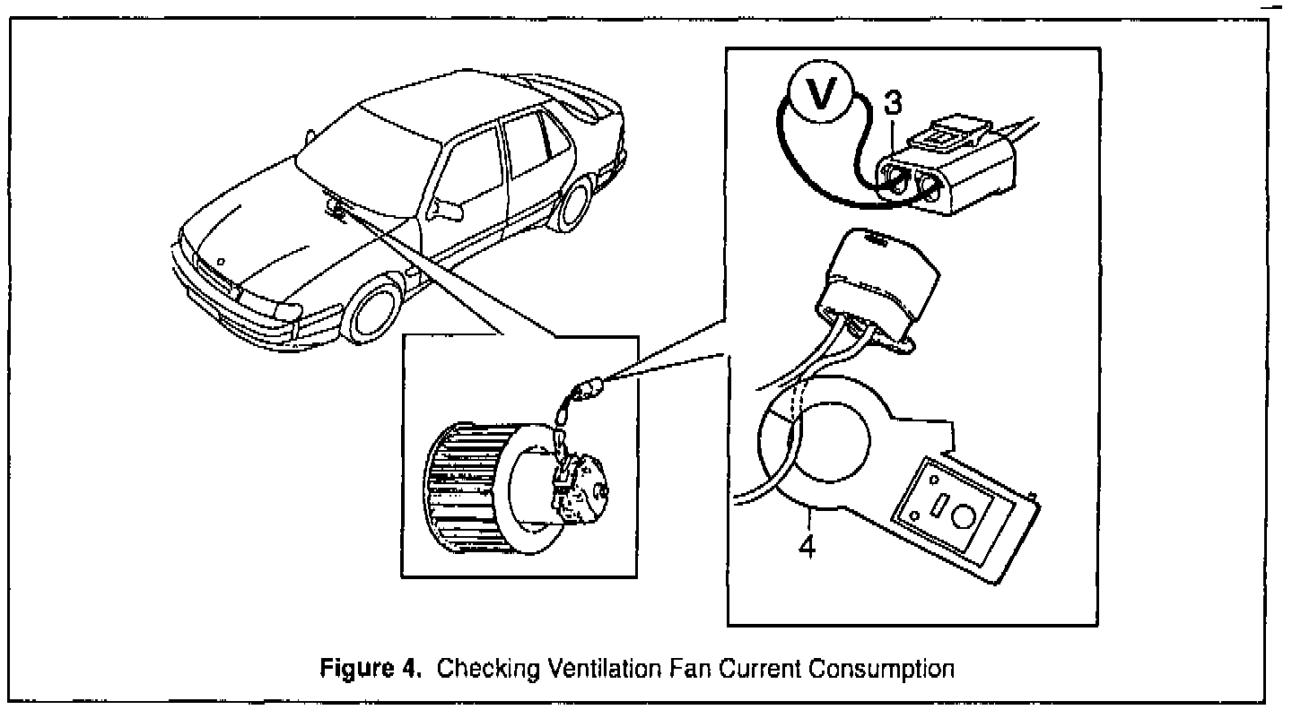 ACC System: To cure a fault, a new fan control with automatic overloading cut-out has been developed. The overloading cut-out turns off the ventilation fan under certain driving conditions. The ventilation fan should also be checked by the method described below. If current draw is higher than the permissible limits, the fan should be changed.