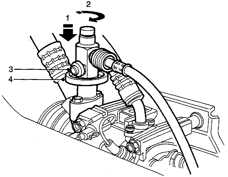 To remove the snap on coupling, first turn the knob (2) anti-clockwise to close the valve. Then remove the snap on coupling by pressing the spring-loaded catch (3), so that the locking sleeve (4) can be pulled up.