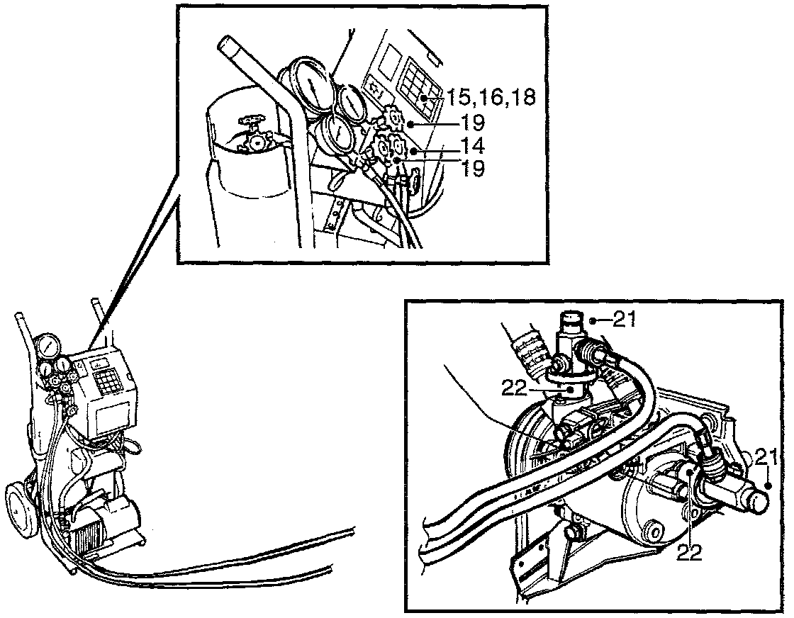 19. Close the cock to the red high-pressure hose to the pressure gauge.